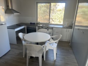– Kitchenette with Fridge/Freezer & dining table and chairs.